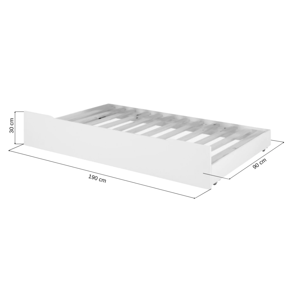Colchão: Compatível com colchão de 188 x 88 cm (altura do colchão da cama auxiliar deve ser de até 16 cm). NÃO ACOMPANHA COLCHÃO