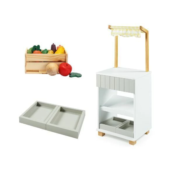 Feirinha Magali + 2 Bandejas + Brinquedo Caixa de Frutas e Verduras - Cinza/Amarelo
