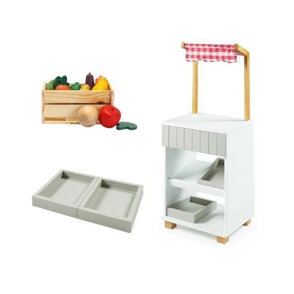 Fabricada em madeira pinus maciça e MDF, a Feirinha Magali garante resistência, segurança e durabilidade. O acabamento em verniz fosco acetinado e a pintura laqueada fosca proporcionam um visual moderno e sofisticado, além de proteger o brinquedo contra desgastes do uso diário.